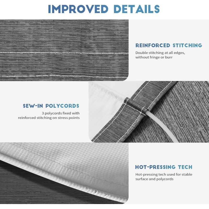 - QUICK-INSTALL - The RV awning replacement has 3 sewn-in polycords fixed with tighter stitching and hot-pressing technology, which can directly slide into the track of your existing RV awning roller tube, making installation time-saving and effortless. We also provide step-by-step instructions to help you finish the installation