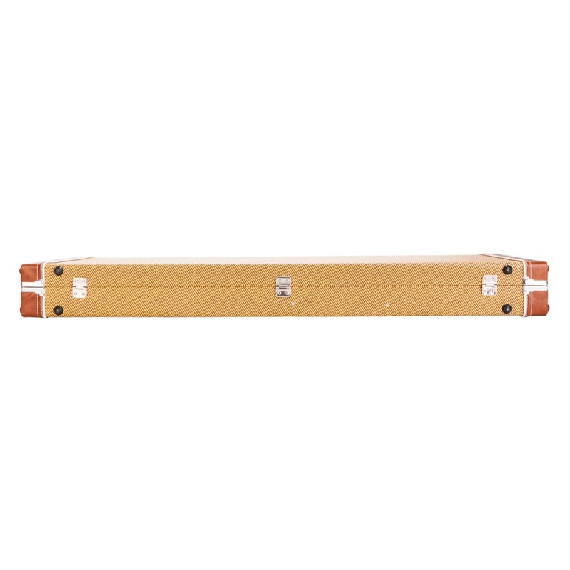1. Lockable wood hard case with plush lined interior that includes extra neck and bridge padding
