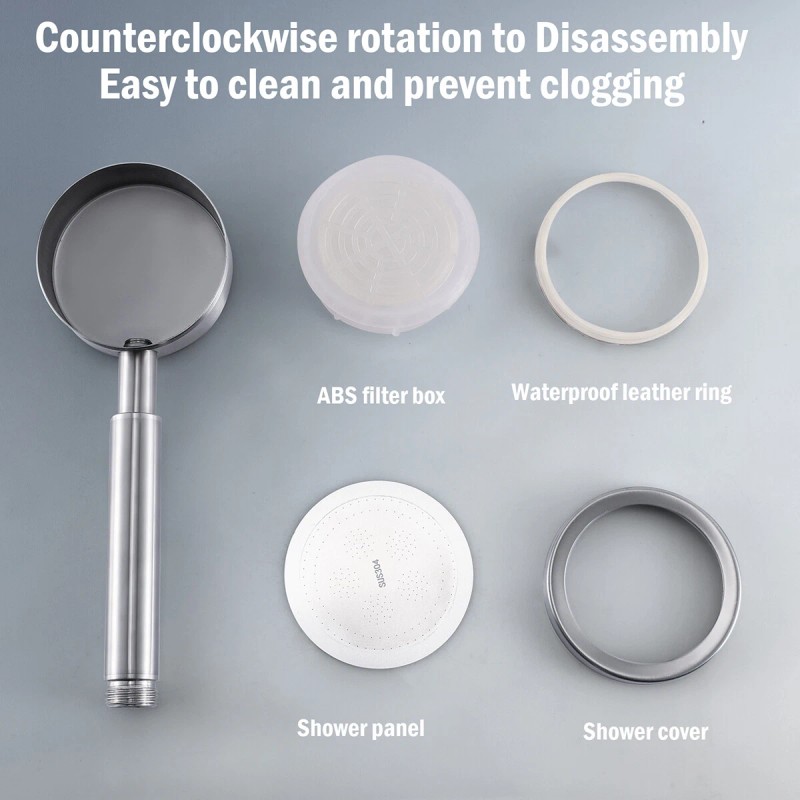 2.Removable and Washable: The shower head can be disassembled and cleaned, and there are filtering fibers inside, which can effectively filter impurities in the water and prevent clogging.