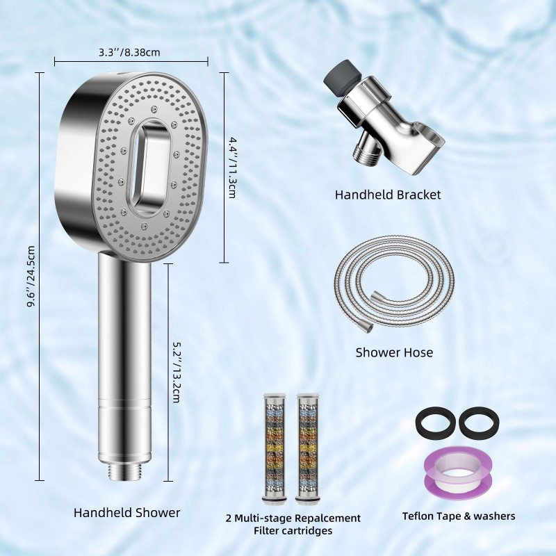 - 【Purify the water】Health is the thing we value most. Our showerhead has a multi-stage powerful water filtration. It effectively removes impurities and residual chlorine, heavy metals (lead, mercury, nickel, chromium) and other harmful substances from the water. Enjoy your shower and improves your skin and scalp environment. Improves your health.
