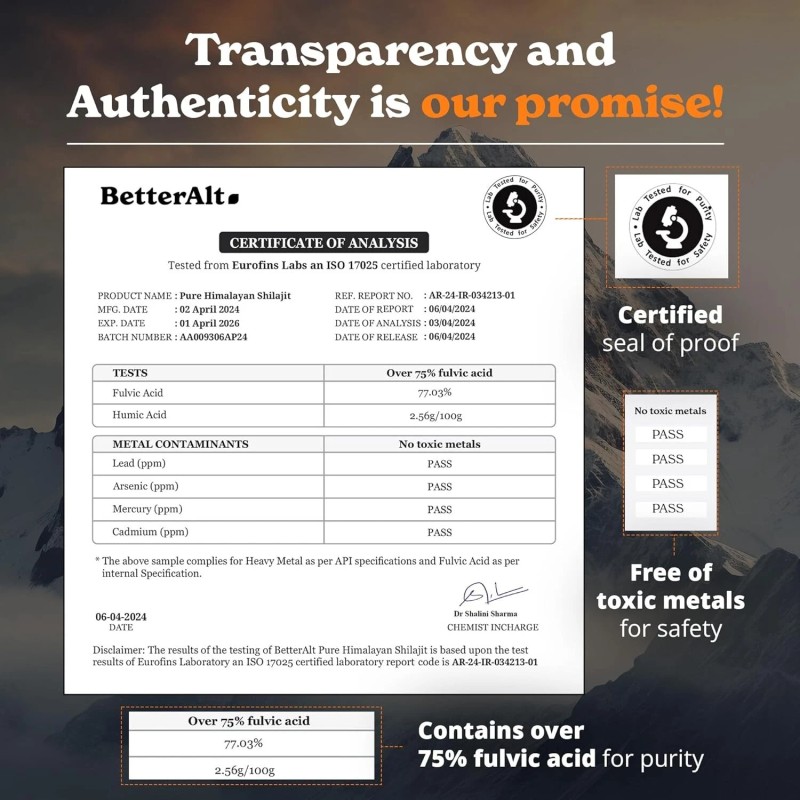 Our pure Himalayan Shilajit resin is sourced from the untouched heights of the Himalayan mountains. Naturally exuding from ancient rocks, it guarantees unparalleled quality and authenticity. Experience the potency and purity of this ancient Ayurvedic treasure, straight from the Himalayas, for a truly exceptional wellness journey with each drop.