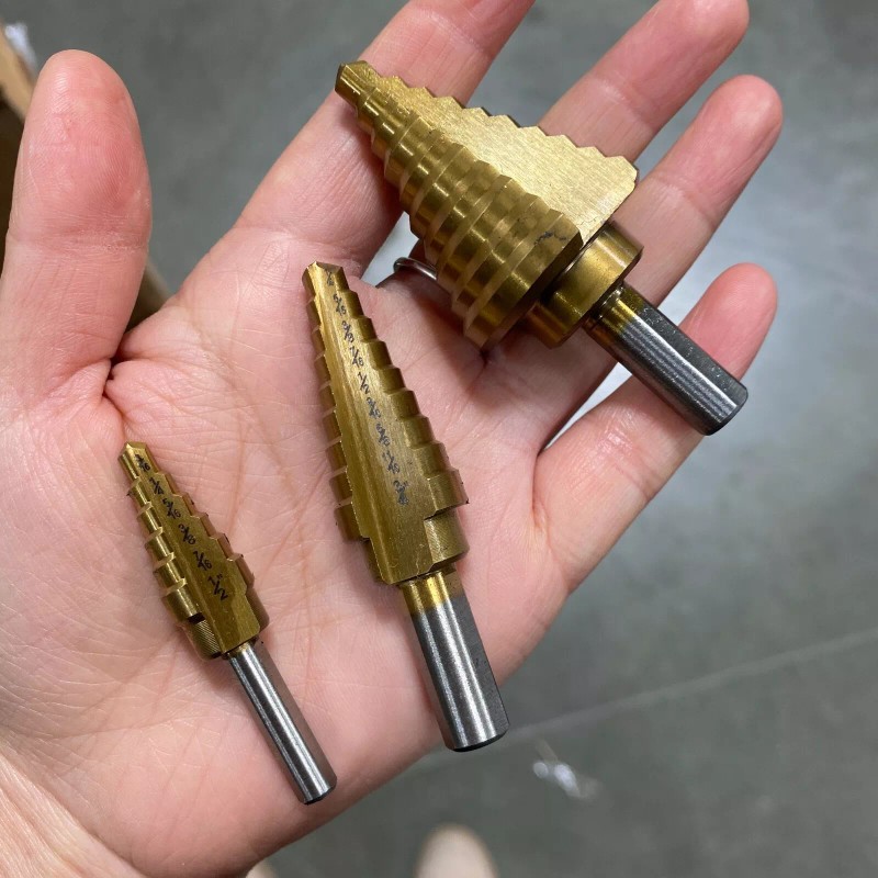 - 50 SIZES IN 5 PIECES STEP DRILL BITS -- The bits set includes five standard step drill bits that can replace 50 individual drill bits and each step drill bit can drill several bore diameters, compatibility with 1/4, 3/8 and 1/2 in. chuck sizes. You don't have to replace drill bit constantly with the step drill bits.