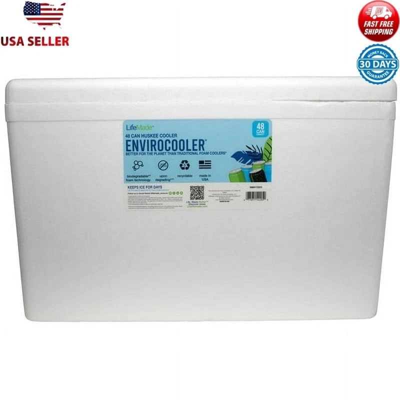 Great insulation: Lifoam Envirocooler 48 Can Huskee uses high-density construction for excellent chill retention, even in hot weather, keeping your drinks cool for a better outdoor experience. Easy access: Forget lid removal hassles. The cooler's hinged lids make accessing your chilled items simple and enjoyable during outdoor moments. Ample storage: With a capacity for 48 standard 12-oz cans and ice, this cooler provides generous space for your beverages, ensuring you have your favorite drinks close at hand during outdoor activities. Convenient to carry: Designed with molded handles, the Envirocooler 48 Can Huskee ensures a comfortable grip for easy transportation. Its ergonomic design makes it effortless to carry, whether loaded or empty. Environmentally friendly: Committed to the environment, the Envirocooler is crafted with landfill biodegradable foam technology, decomposing within 4 years at a remarkable rate of 92%, significantly reducing its environmental impact. Versatile and eco-conscious: 50% denser than standard foam coolers, the Envirocooler offers superior protection against breakage and cracking. It maintains the functionality of traditional coolers while being an eco-conscious choice that doesn't compromise on quality. Spacious dimensions: Measuring 23. 3" x 16" x 12. 6" inches, this cooler provides a roomy solution for your cooling needs, ensuring you're well-prepared for your outdoor excursions.