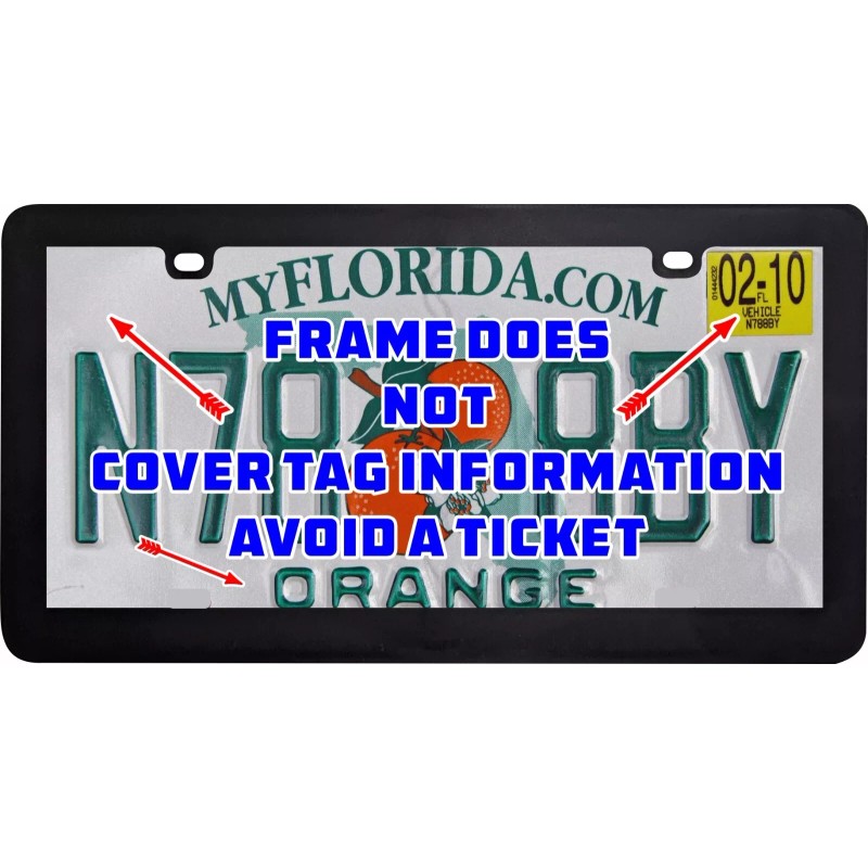 Our license plate frames DO NOT cover any license plate information.