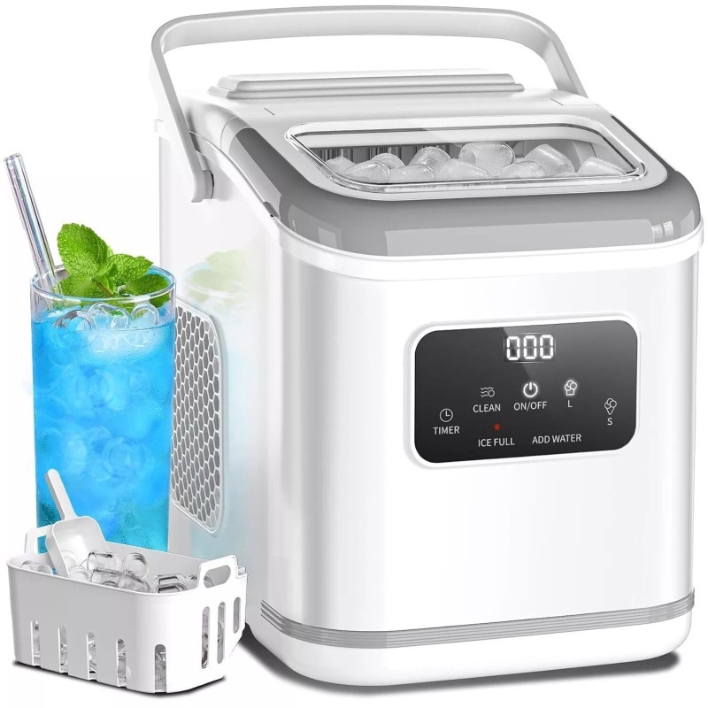 Simple operation with advanced digital screen: The LED control panel is simple to operate, fill the ice maker with water, press the "ON" button, and choose the size of the ice cube to be made. During the ice-making process, the digital screen will display the remaining time to complete a round of ice making (with seconds as the unit of time).When the water level is low or the ice basket is full, the indicator light will illuminate. The Timer button can be used to set a timer ranging from 1 to 24 hours.Timed setting, you can better enjoy the convenience and fun brought by the ice machine