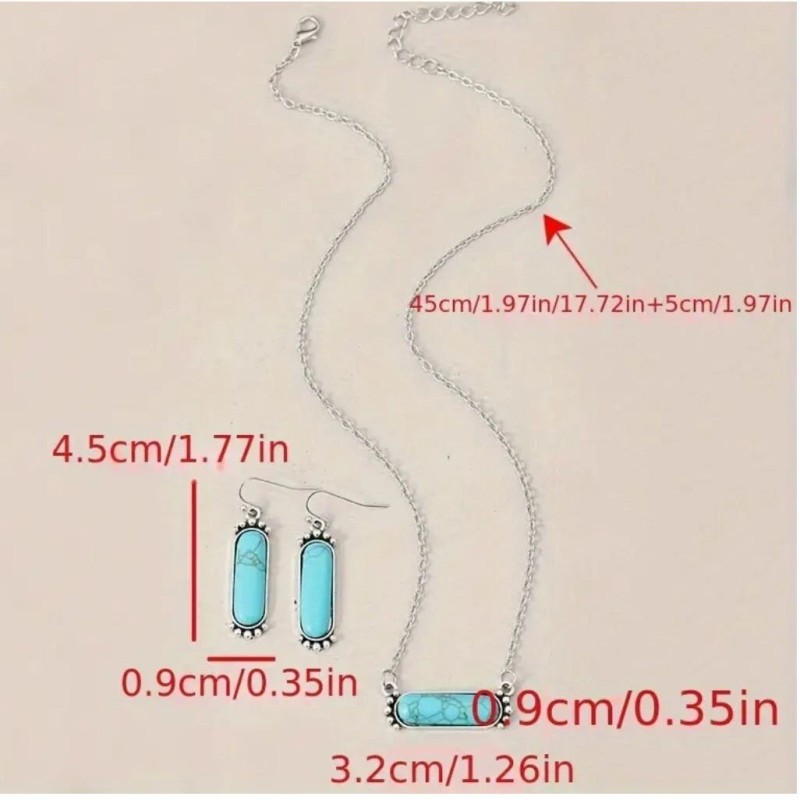 Elegant turquoise necklace and earring set with a silver chain. Ideal for adding a touch of sophistication to your jewelry collection.