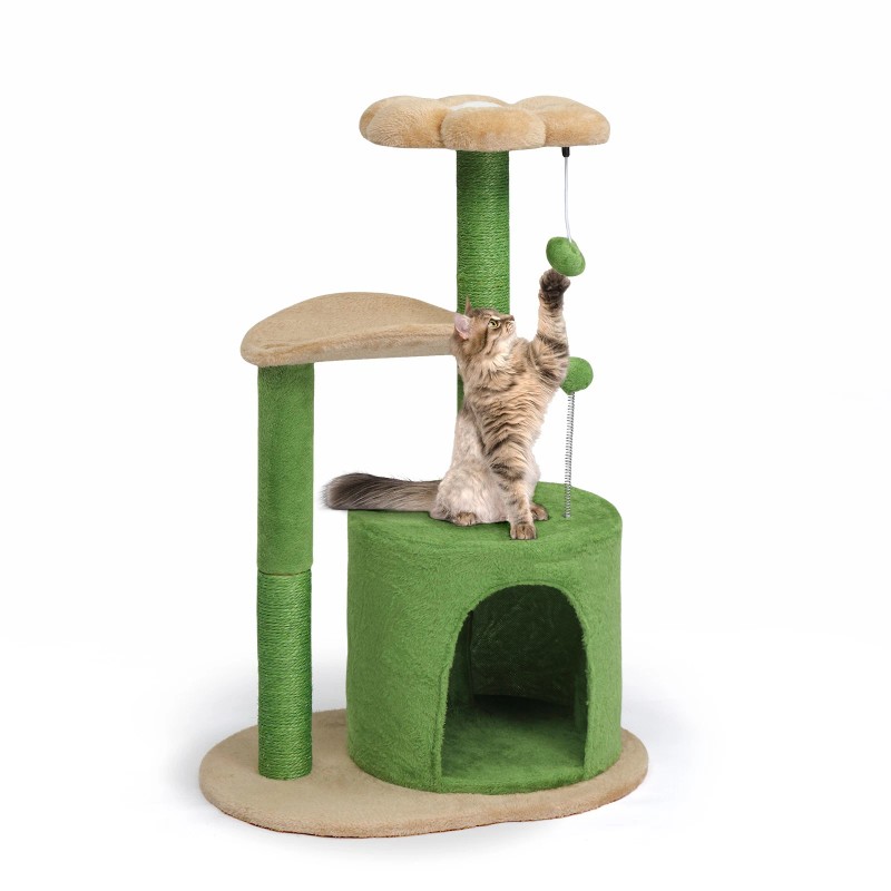 3. Interactive and Healthy Play: With a spring-mounted plush pom-pom and an upper dangling ball, this tower keeps your cat engaged and active. The sisal-covered posts encourage healthy scratching habits while satisfying your cat's natural instincts.
