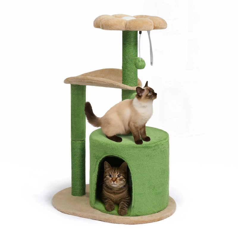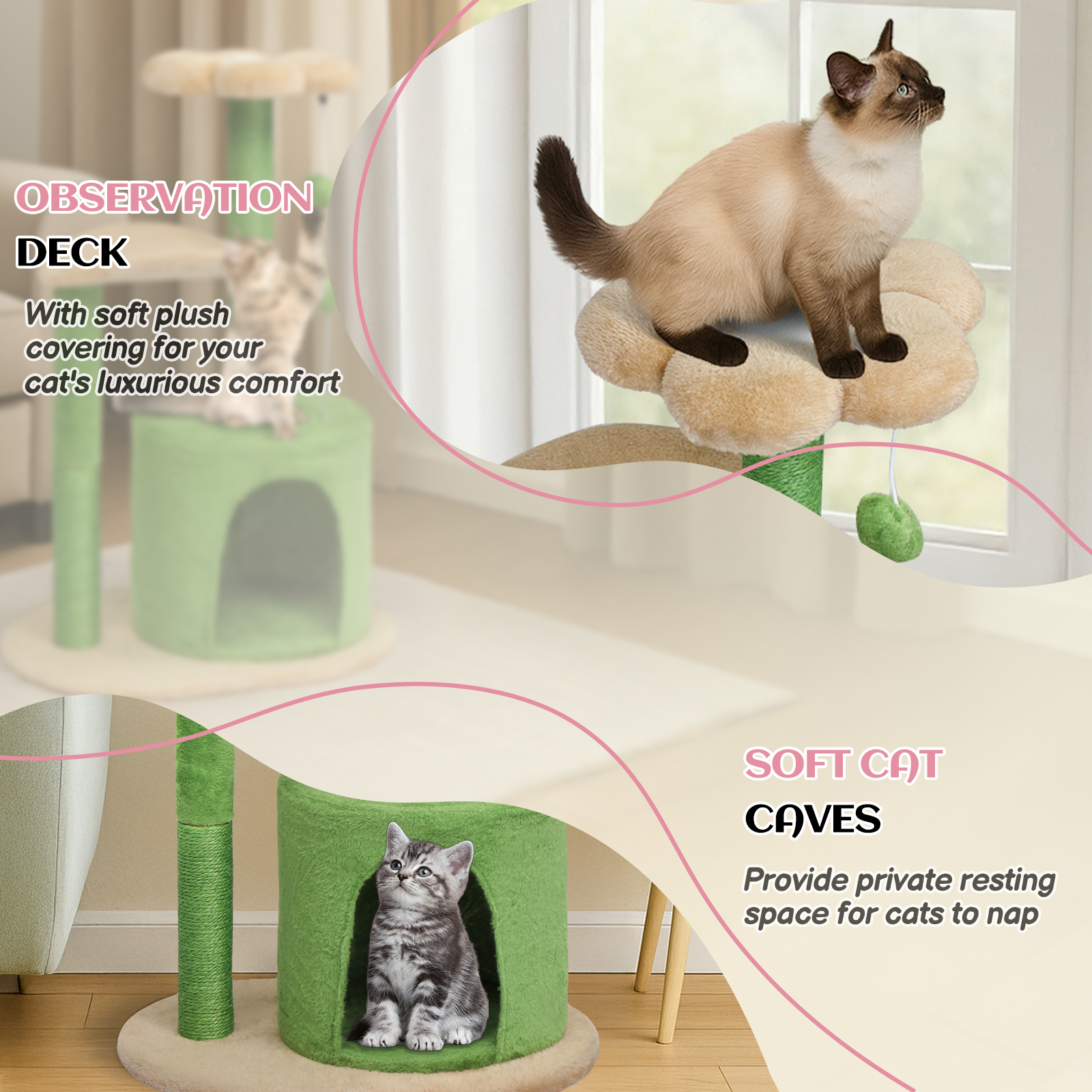 Indoor 33" Cat Tree Flower Tower with Cat Scratching Post Condo 2Toy Balls House