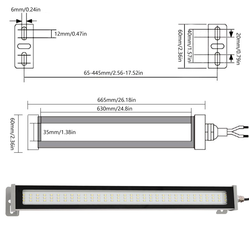 Unbranded Industrial Machine Tube Light LED Waterproof CNC Machine Work Light 20W IP67