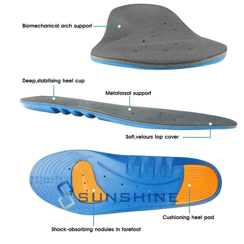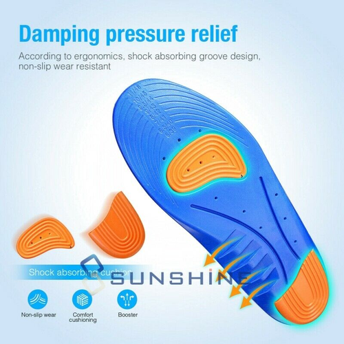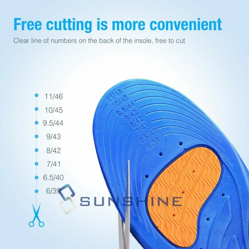 RUNNING Athletic GEL SHOE INSOLE: It can provide soft and adjustable size used in walking or casual hiking shoes, work shoes and boots which are comfortable and cushioning for all types of everyday footwear. (Trim to fit using the size guidelines on the insole)