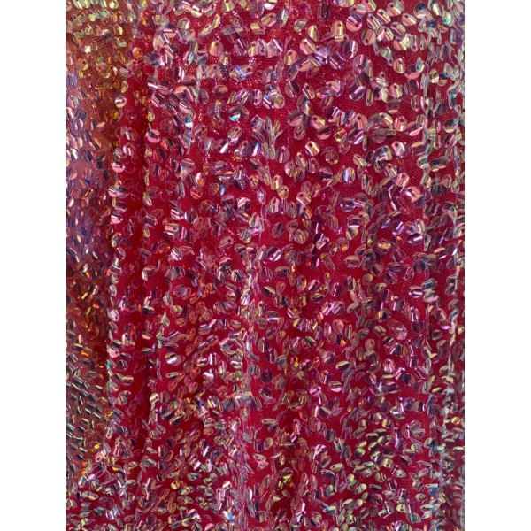 Unbranded Iridescent red economic all over shiny sequins on a 2 way stretch Velvet