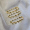 Add a touch of elegance to your jewelry collection with this beautiful gold Iron Safety Pin Brooch Findings. Perfect for all your crafting and DIY projects, this pin features 3 loops and is made of durable iron. Made in China, this pin is a must-have for all your jewelry making needs and is perfect for use in brooch components, beads and jewelry making, and other crafts. With its sleek and stylish design, this pin is a great addition to any outfit and is perfect for both casual and formal occasions.