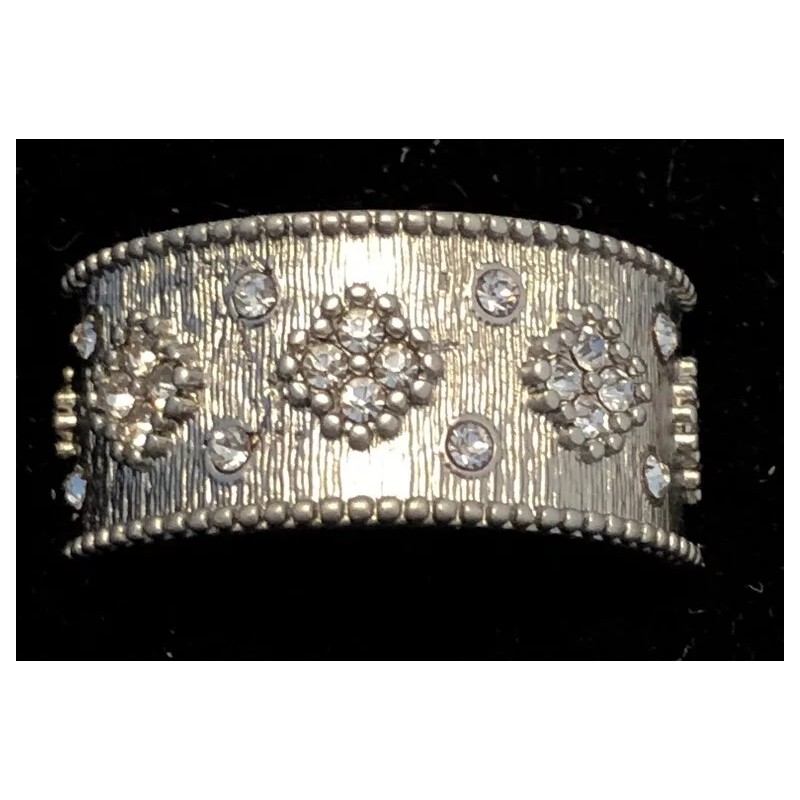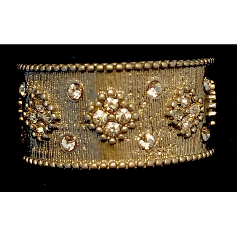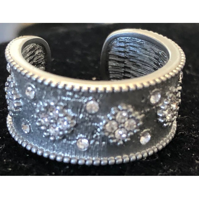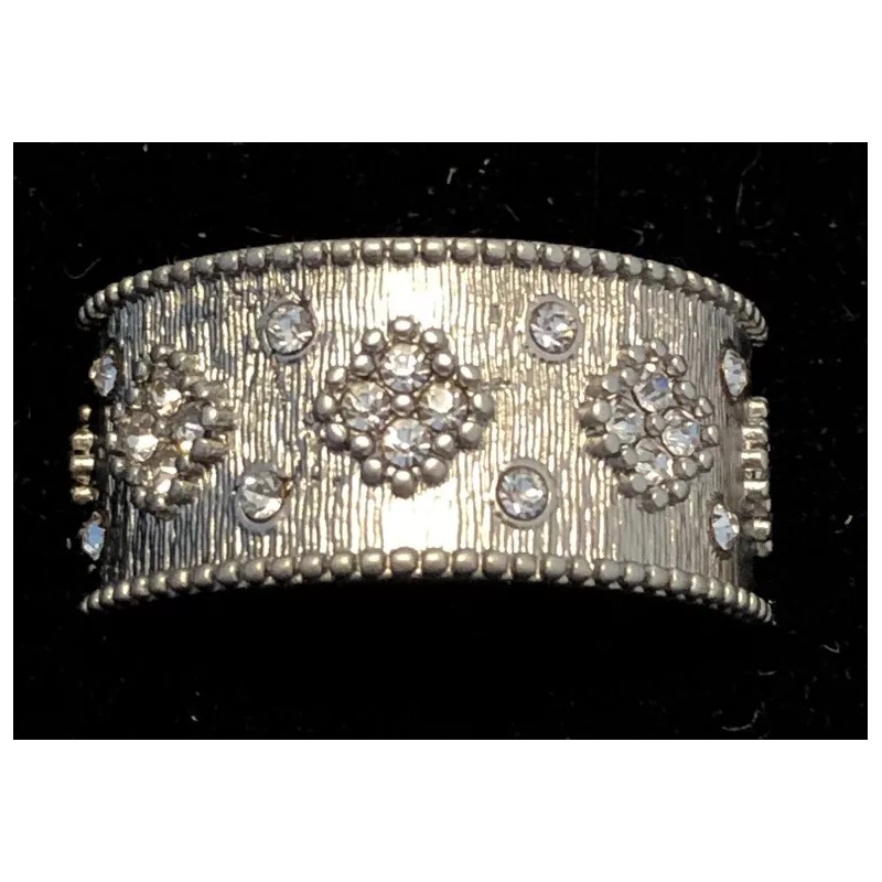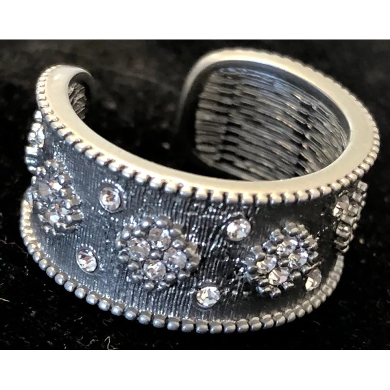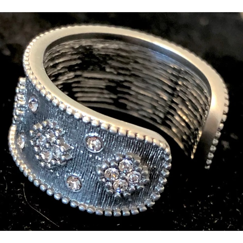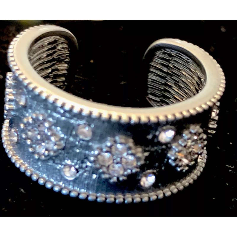 Unbranded Italian Designer Matte Wt Gold Plated Band Ring Adjustable 4.5-8.5 Clear Stones
