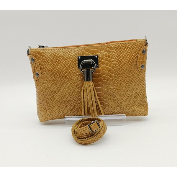 Unbranded Italian Snake Embossed Genuine Leather Crossbody Handbag Cognac – Made In Italy