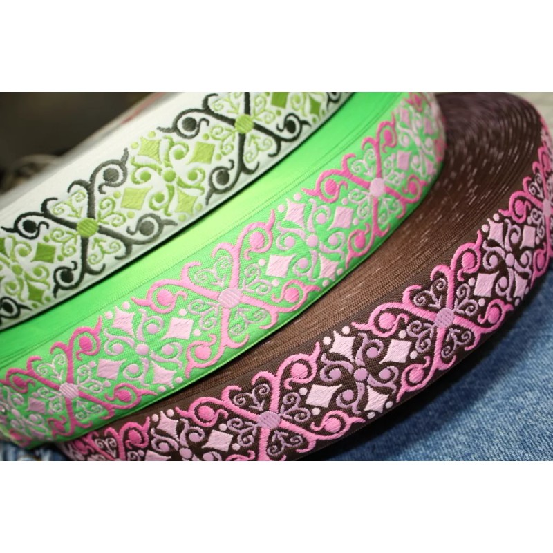 Unbranded Jacquard Thick Green 1 5/8 in Wide by the yard