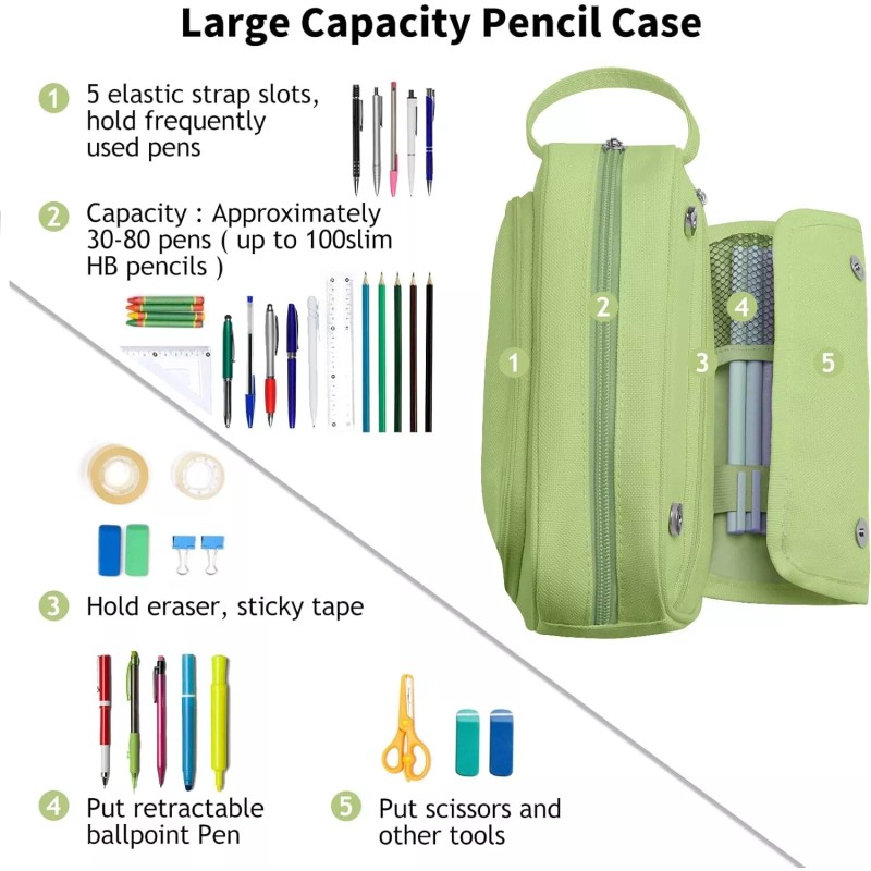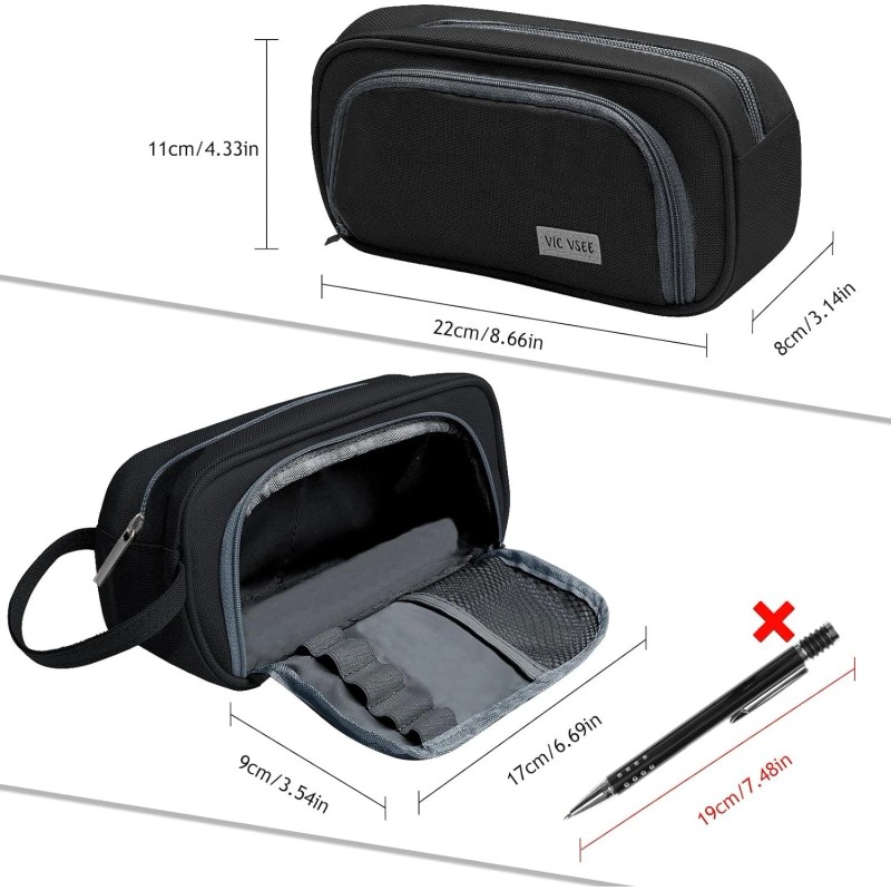 - Large Capacity Storage: With 8.66 x 3.14 x 4.33 inches dimension, the large capacity pencil case is spacious inside with elastic loops and multiple compartments with the ability to store up to 50 pens or 100 pencils and other small items such as scissors, sticky notes, erasers, and tape with ease. Perfect for storing your personal items and stationery.