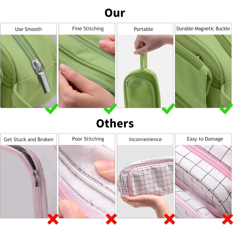 - Convenient Design: The three-layer pencil pouch is easy to organize and organize items, the front and back of the soft pencil case has an elastic band design that can hold frequently used pens, multiple compartments for small items such as sticky notes and cards, and the final zipper compartment can hold tools such as scissors and rulers.