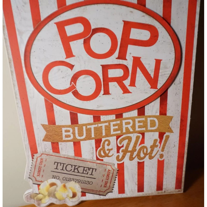 Large Popcorn Sign Fresh Buttered Hot Movie Theater Concession Stand Decor