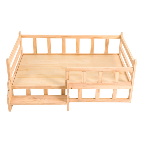 Careful Design: The stairs make it easy for pets to get on and off the bed, and the elevated fence can prevent pets from accidentally falling off while relaxing, sunbathing, sleeping or playing, providing them with sufficient safety. A thickened and flat bed board can avoid dents, protect pet bones, and ensure great comfort.