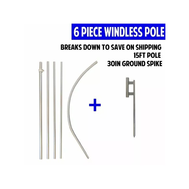 Included: (1) Windless Flag, (1) 5-Piece Pole, & (1) Ground Spike |