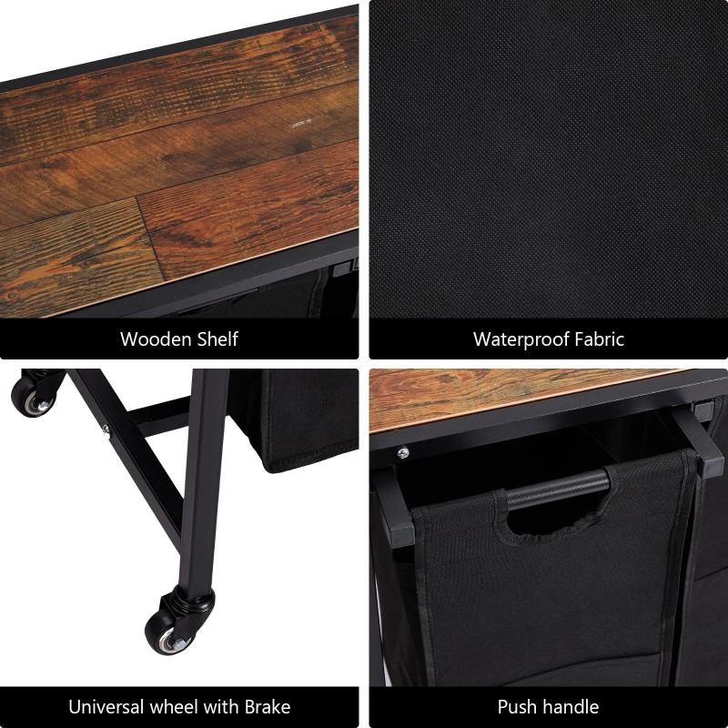 User-Friendly Features -Reinforced top doubles as a folding station for clothes or sorting table.Ergonomic handles on both the main frame and individual bags for easy transport.