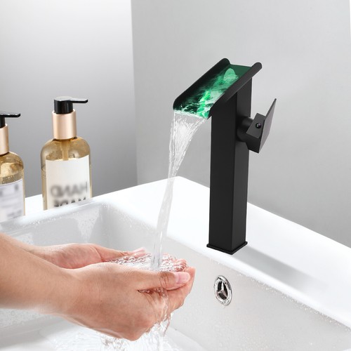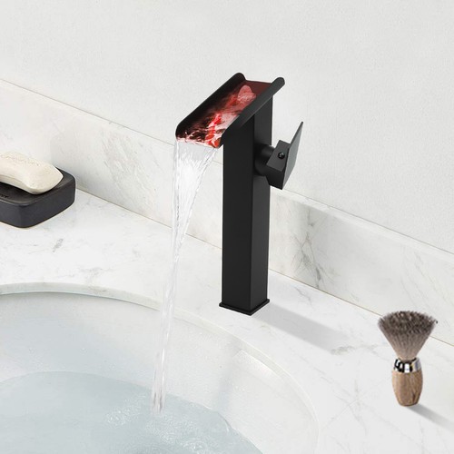 Unbranded LED Bathroom Facuet Waterfall Lever Handle Sink Faucet Vanity Faucet 1Hole Black