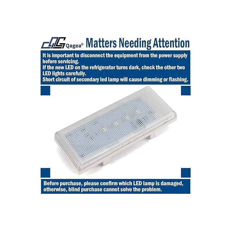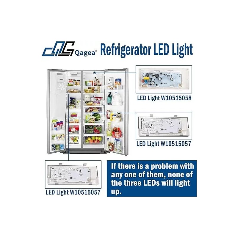 - 【Important Note】Your refrigerator has three LED lights. One on the top of the fridge (LED light W10515058), one in the middle of the side of the fridge, and one on the side of the freezer. If any one of them is defective, none of the three leds will light up. If you purchased W10515058 LED lights, but these lights still do not work, it means that the other two leds are broken and you need to buy the other two lights to replace them.