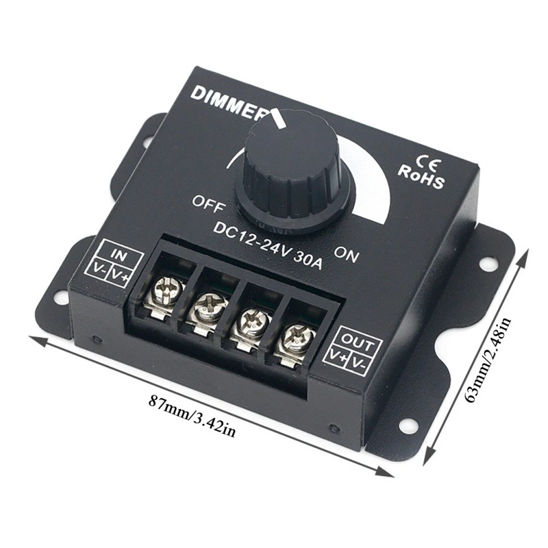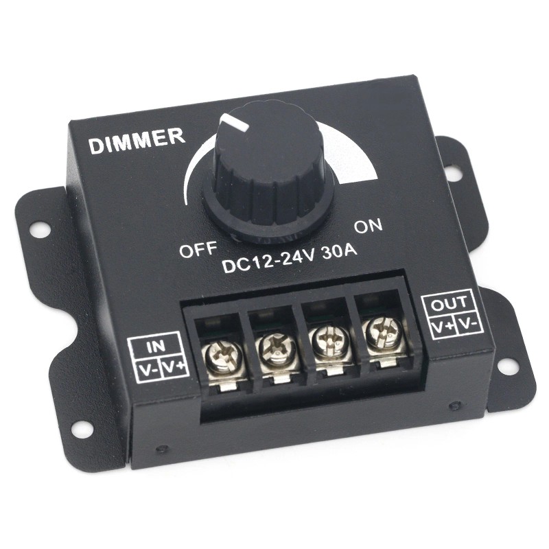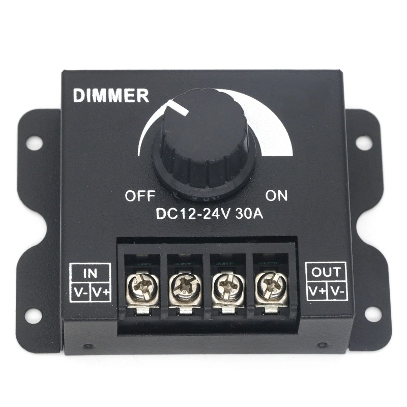 - Compatible with DC 12-24V Max 30A LED light application, single channel dimming controller for single color 5050 3528 5630 LED strip lights.