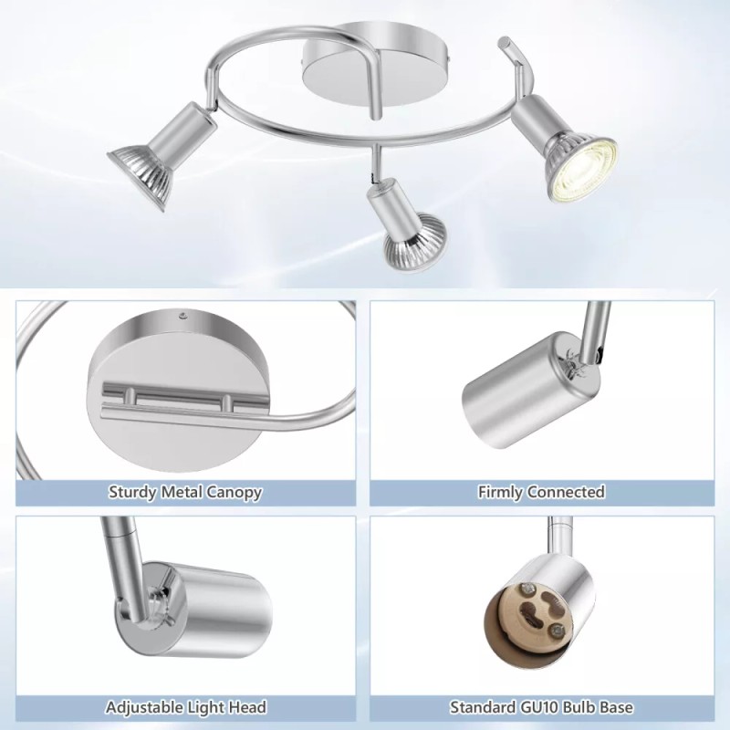 1*3-Light Round Ceiling Spotlight(Bulbs not included)