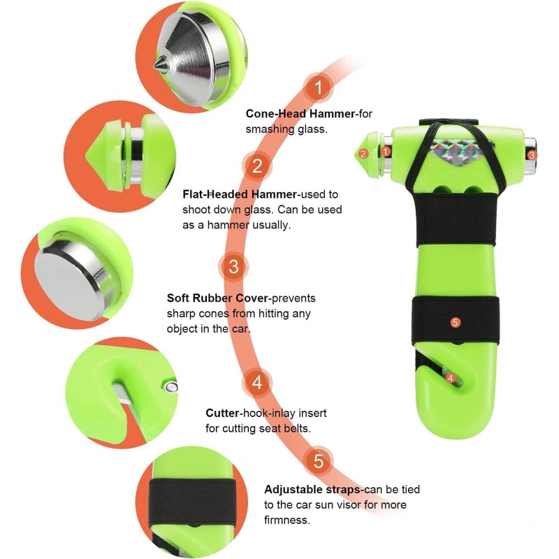 - Features a sturdy hammer-head glass breaker designed to save lives when every second counts.