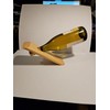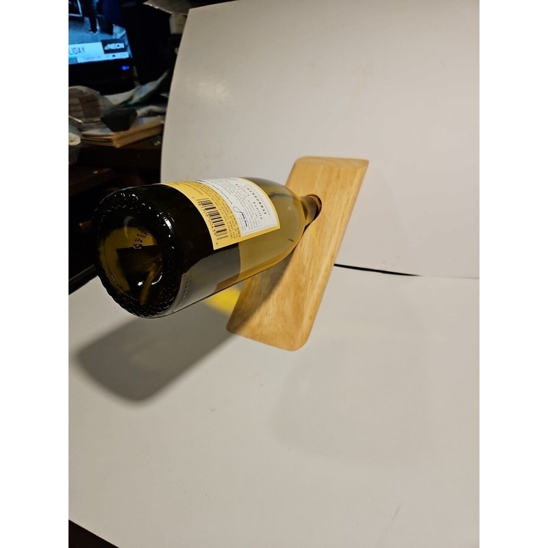 Elevate your home bar with this modern and eye-catching wine bottle stand holder. Crafted from light natural wood, this freestanding piece boasts a gravity-defying design that adds a touch of whimsy to your space. It has a capacity of one bottle and measures 9.5 inches in length, 0.75 inches in height, and 3.5 inches in depth.
