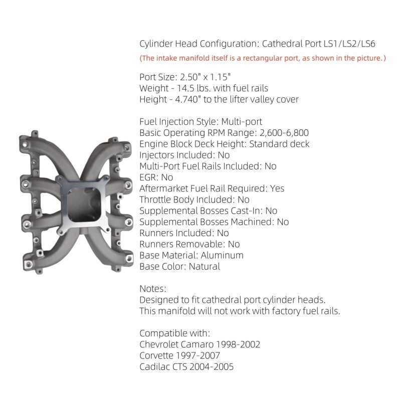 for All GM LS Gen III or IV engines equipped with LS1/LS2/LS6 style cathedral port cylinder heads.