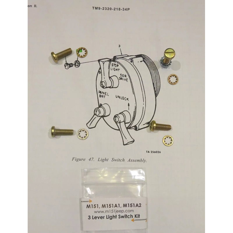 Unbranded M151 Series M151A1 M151A2 - 3 lever Light switch - Hardware Kit