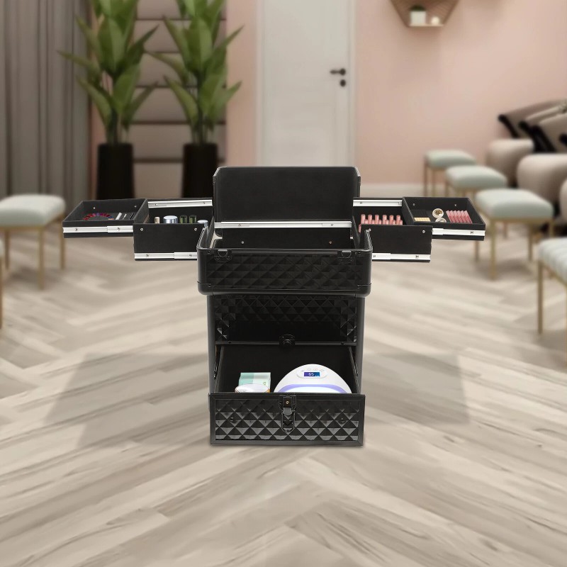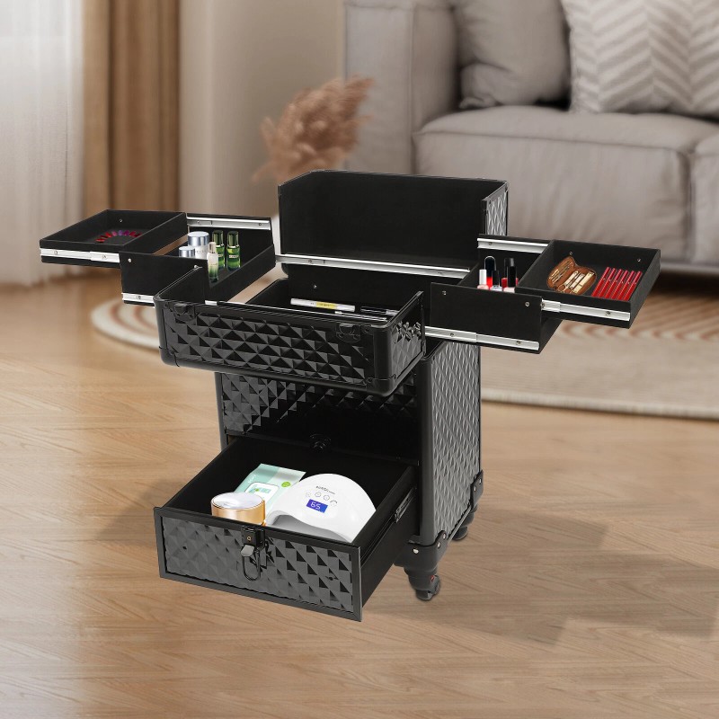 This rolling makeup train case can be widely used by hair stylists, pet groomers, makeup artists, and so on for storing scissors, makeup, jewelry, combs, and other items. In addition, it is also very suitable for you to store tools or daily necessities when you go out