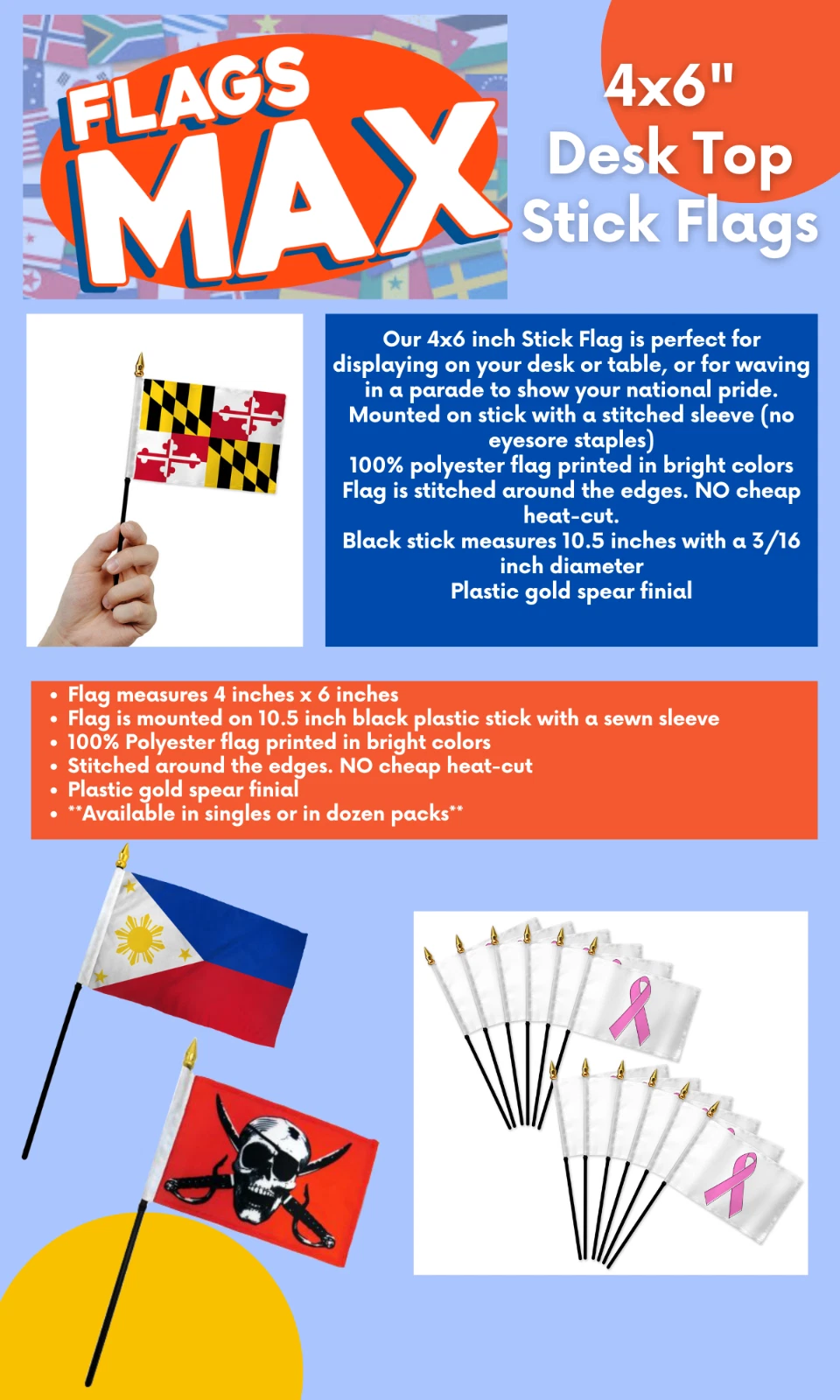 Unbranded Maldives 4x6in Country Stick Flag - 1 dozen pack