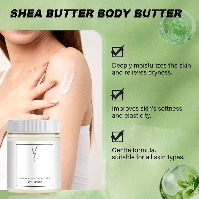 1. Use after bathing: After bathing and cleaning, take an appropriate amount of magnesium body butter on the palm of your hand while the skin is slightly damp.