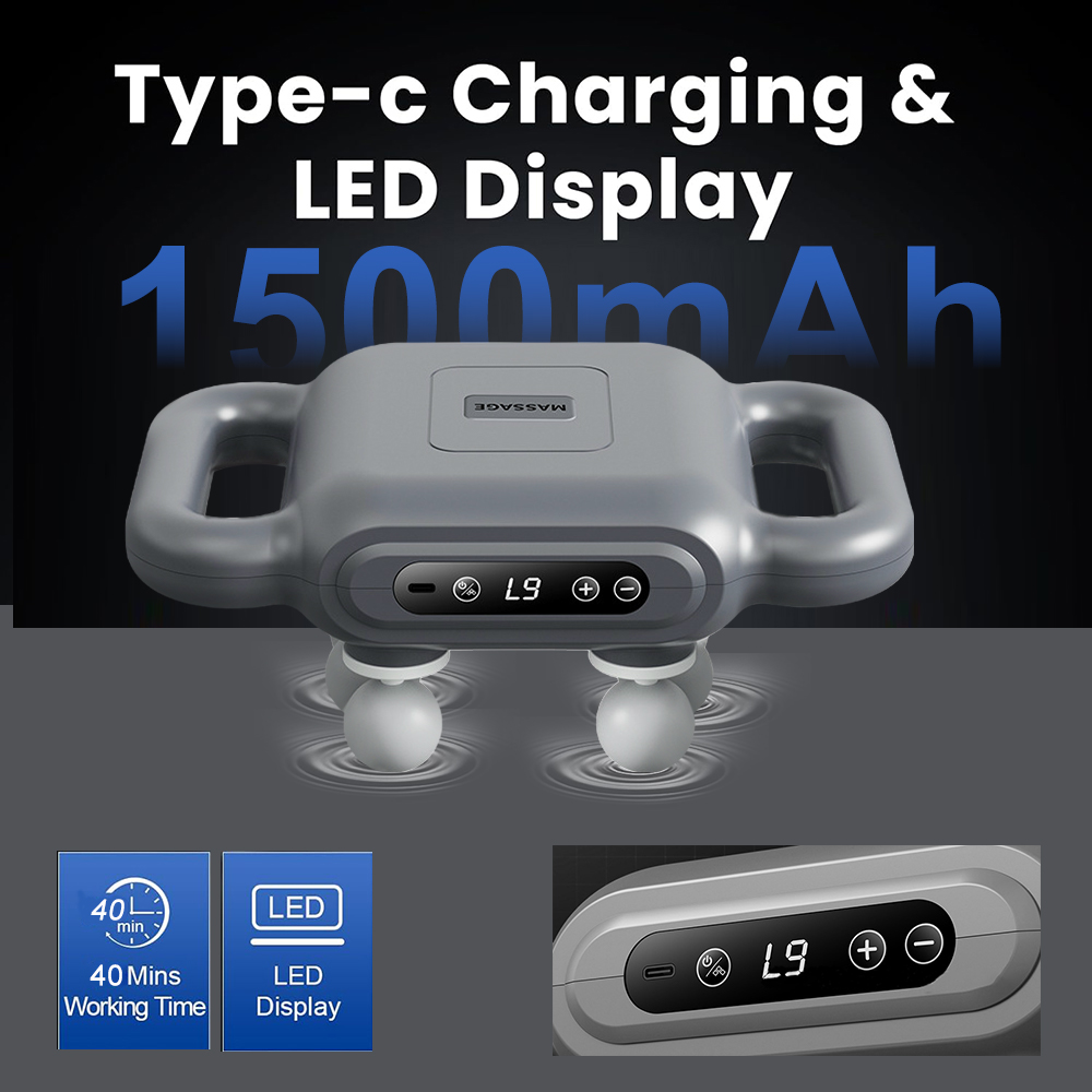 Long Battery Life & Low Noise:Enjoy uninterrupted use with the large 1500mAh battery that provides up to 40 minutes of continuous use on a full charge. Additionally, the low-noise motor ensures a quiet, relaxing experience, whether you're using it at home, in the office, or at the gym, without disturbing those around you.
