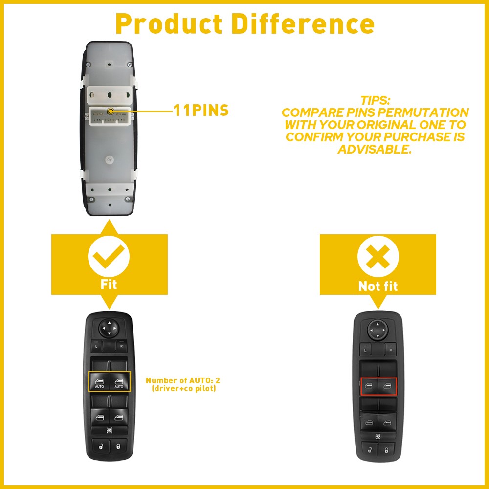 Features: *Better stability with longer service life. *This power window switch fits, functions and matches the appearance of the original one for a perfect replacement. * Direct replacement without other tools. * It has undergone simulation and endurance testing to ensure proper fit and performance.