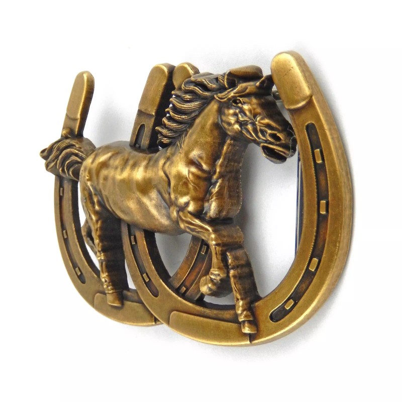 Unbranded Men's Double Horseshoe Horse Belt Buckle Antique Bronze Western Fits 1.5 in Belt