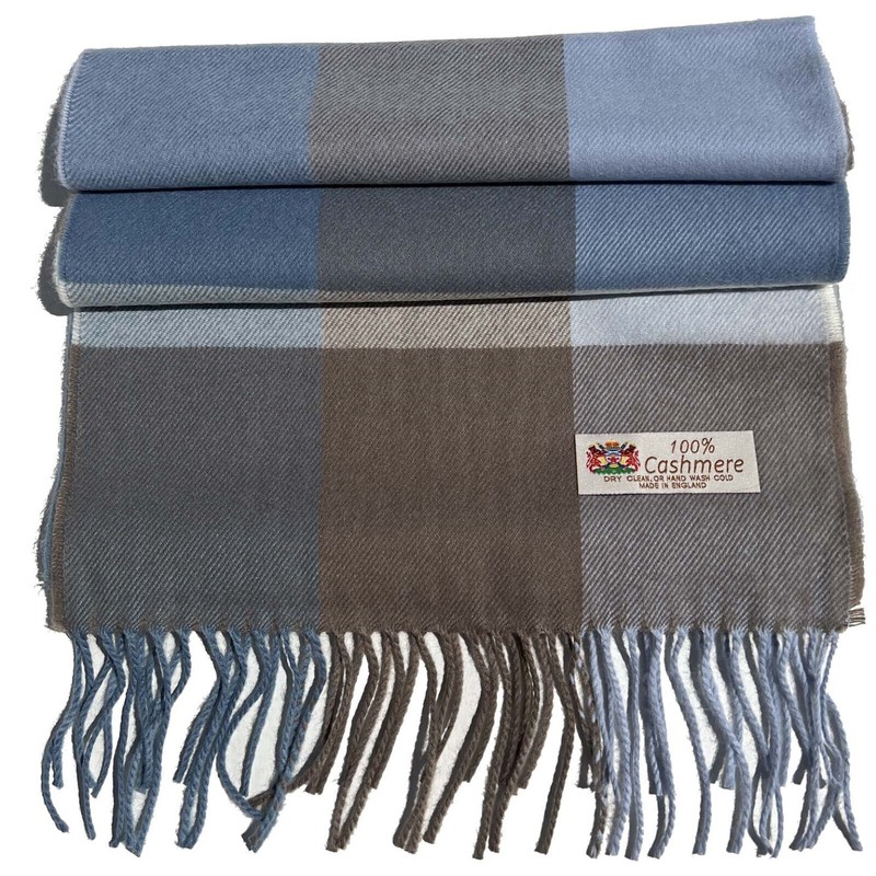 Unbranded Mens Womens Winter Warm 100% CASHMERE Scarf Check Plaid Blues / Tan SOFT Wool