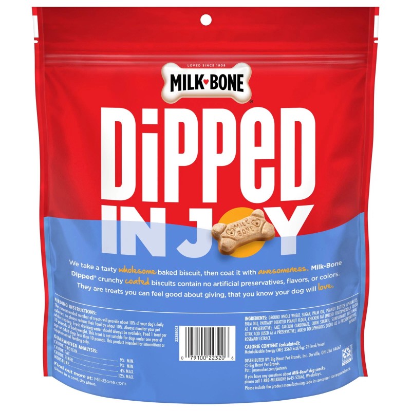 - Contains one (1) 32-ounce bag of Milk-Bone Dipped Dog Biscuits Baked With Real Peanut Butter
