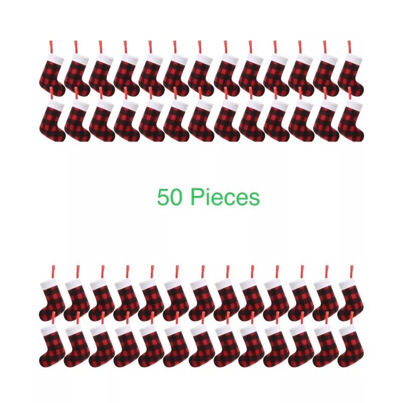 Unbranded Mini Christmas "Red Buffalo Plaid" Stockings 50 Pack 5 inches -NEW