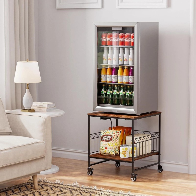 Unbranded Mini Fridge Stand With Storage & Charging Station, Mobile Shelf With 4 Wheels US