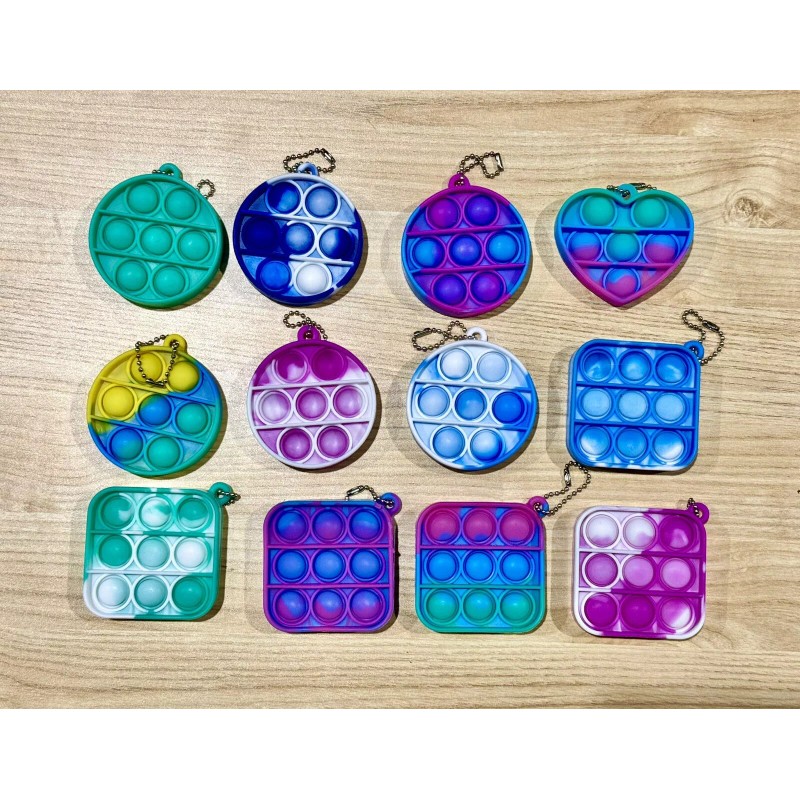 Assorted Mini Keychain Push Pop Fidget Bubble Popper Pop It 12 pack