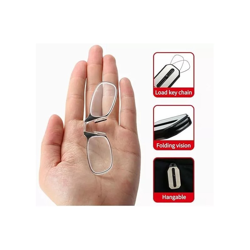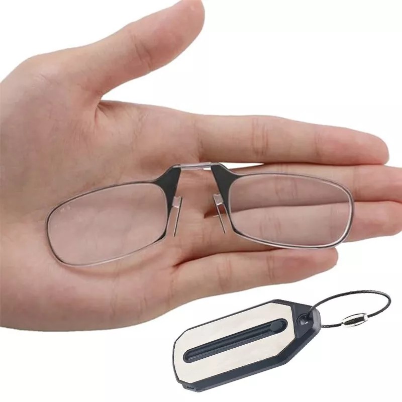Unbranded Mini Nose Clip On Portable Reading Glasses Rimless Key Chain Wallet Magnifying - Black, +3.0
