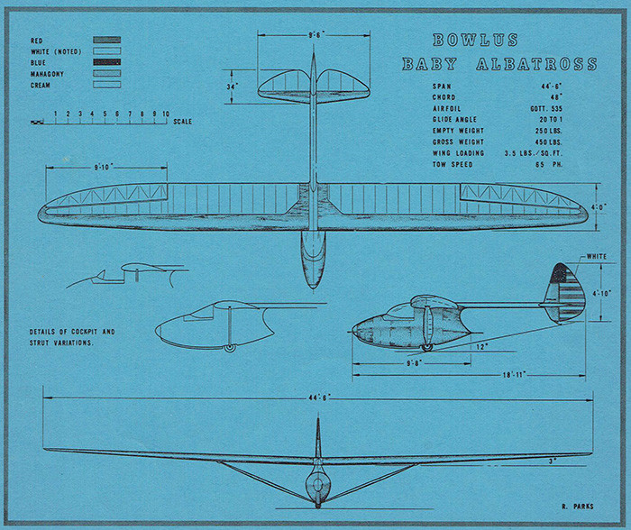 Unbranded Model Airplane Plans: BOWLUS BABY ALBATROSS 1/5 Scale 105" R/C Sailplane, Glider