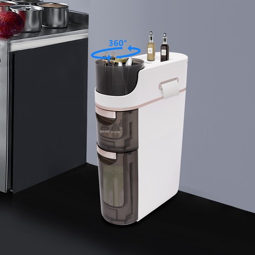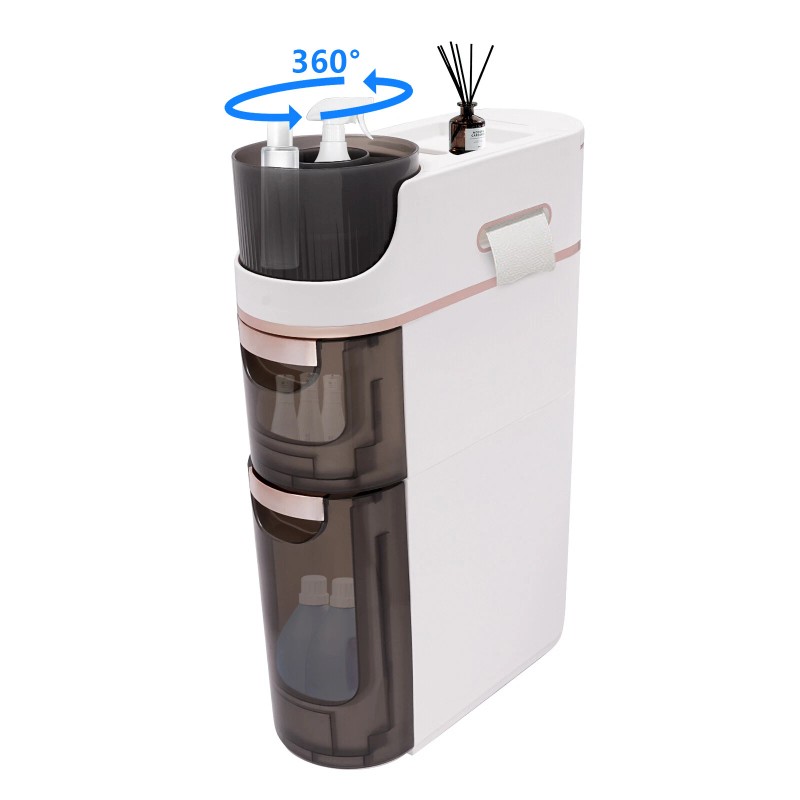 Large Capacity: The heightened bottom drawer is convenient for you to put large towels, tall bottles of shampoo, and laundry detergent, and the upper drawer is for you to store cosmetics, toiletries, cleaning products, snacks, pet supplies, toys and so on. The top has 3 compartments(360° rotatable organizer, recessed storage area with a phone holder, and tissue holder) to provide you with more storage space.