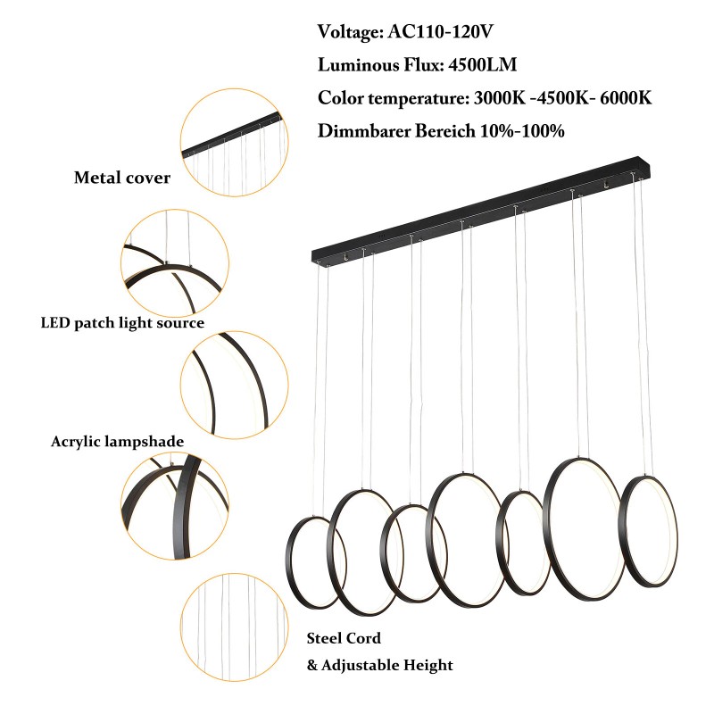 - You Will Get Multiple Shapes by Adjusting the Strings of Each Rings Easily via Cable Locking Pins, Diy and Choosing Your Favorite Shape Before Install; the Strings Can Be Adjusted from 1 to 47 Inch; Will Perfectly Fit the Height of Your Ceiling