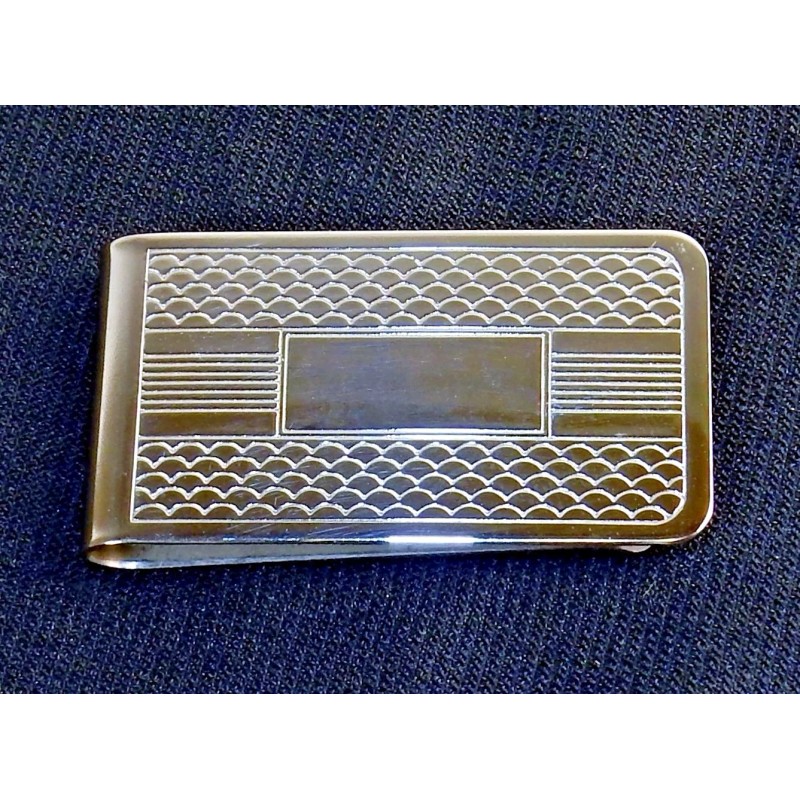 Unbranded Money Clip ~ Silver-Tone w/Scallops & Lines, Rectangle Engraving Space #5320280