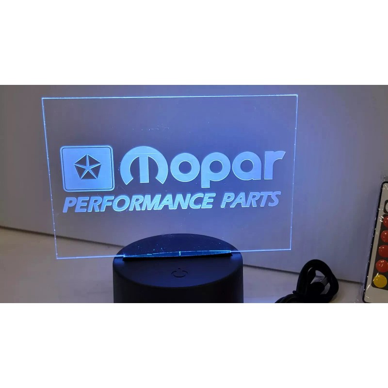 Mopar Performance Parts Custom Made Laser Engraved - 7 Color LED Lamp Base with USB or Battery and Touch control Rotating Fade or Solid Color mode. Makes a perfect Nightlight for a Unique Gift for any age. This 3D illusion LED color changing Desk lamp makes a perfect With Remote night light